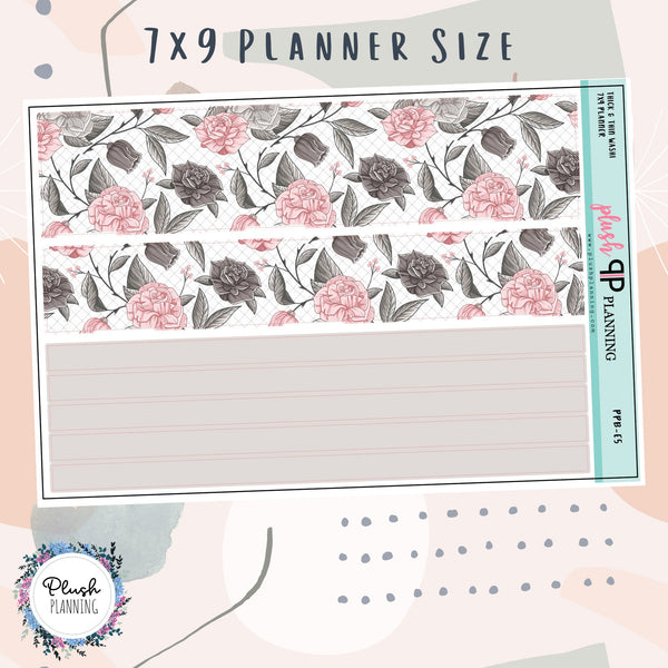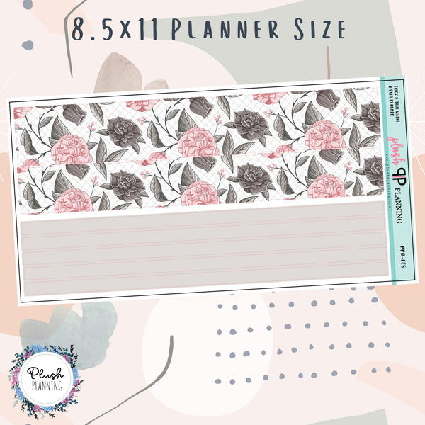 7x9 or 8.5x11 Planner Stickers Washi Stickers, Pink and Gray Floral Washi